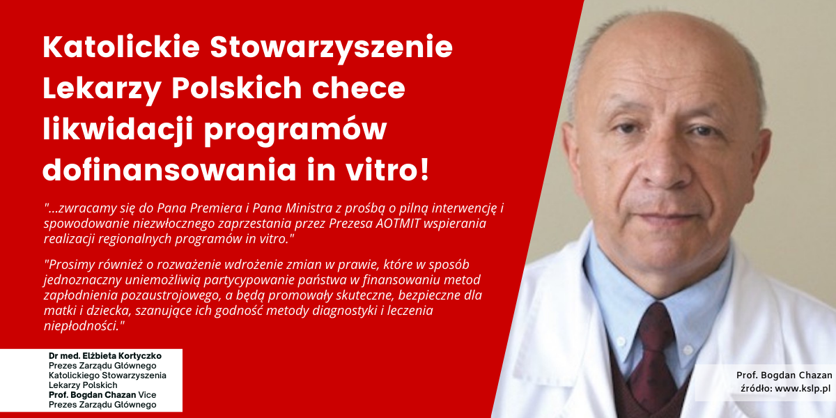 Katoliccy lekarze chcą likwidacji dofinansowania in vitro przez samorządy